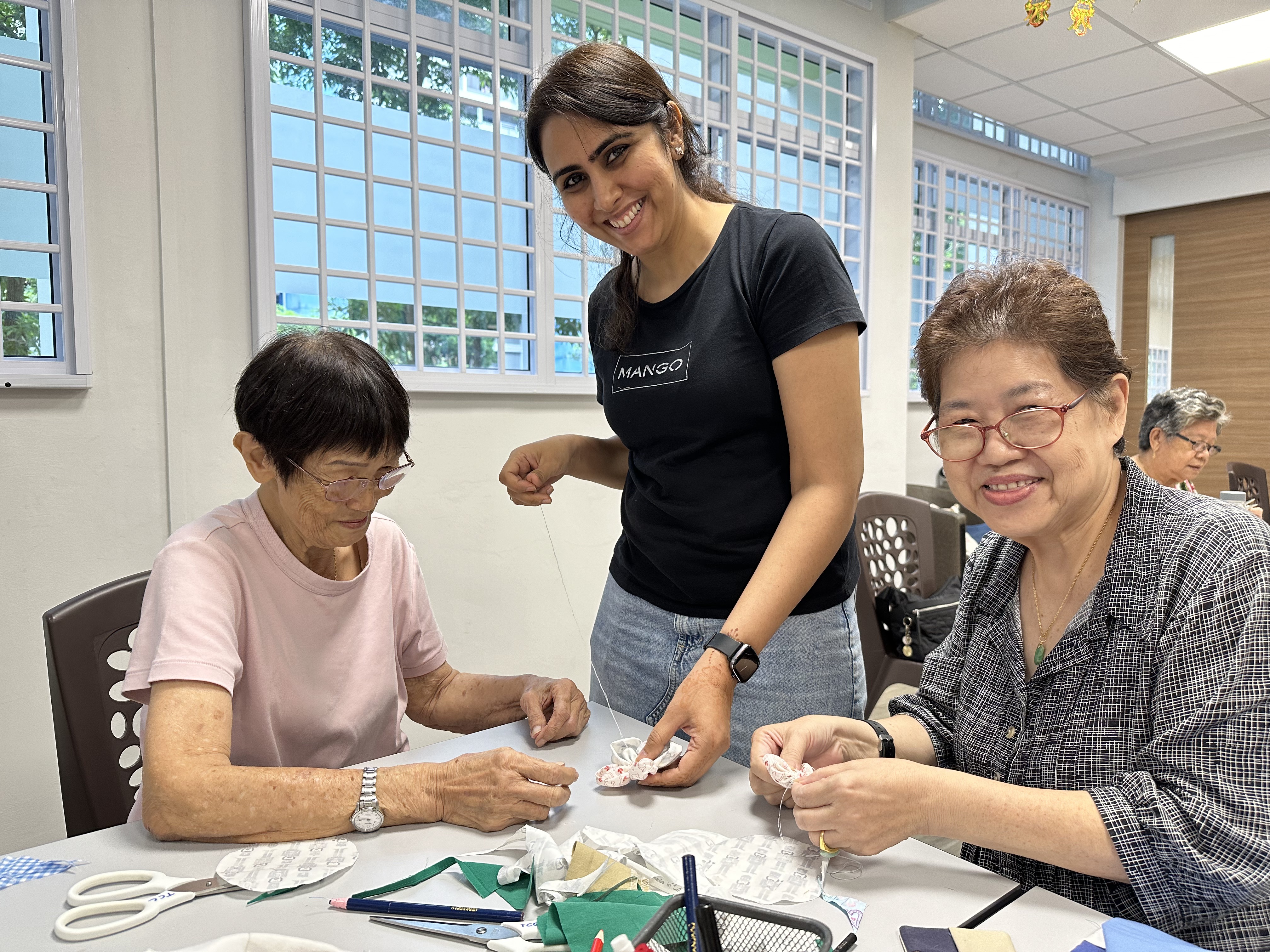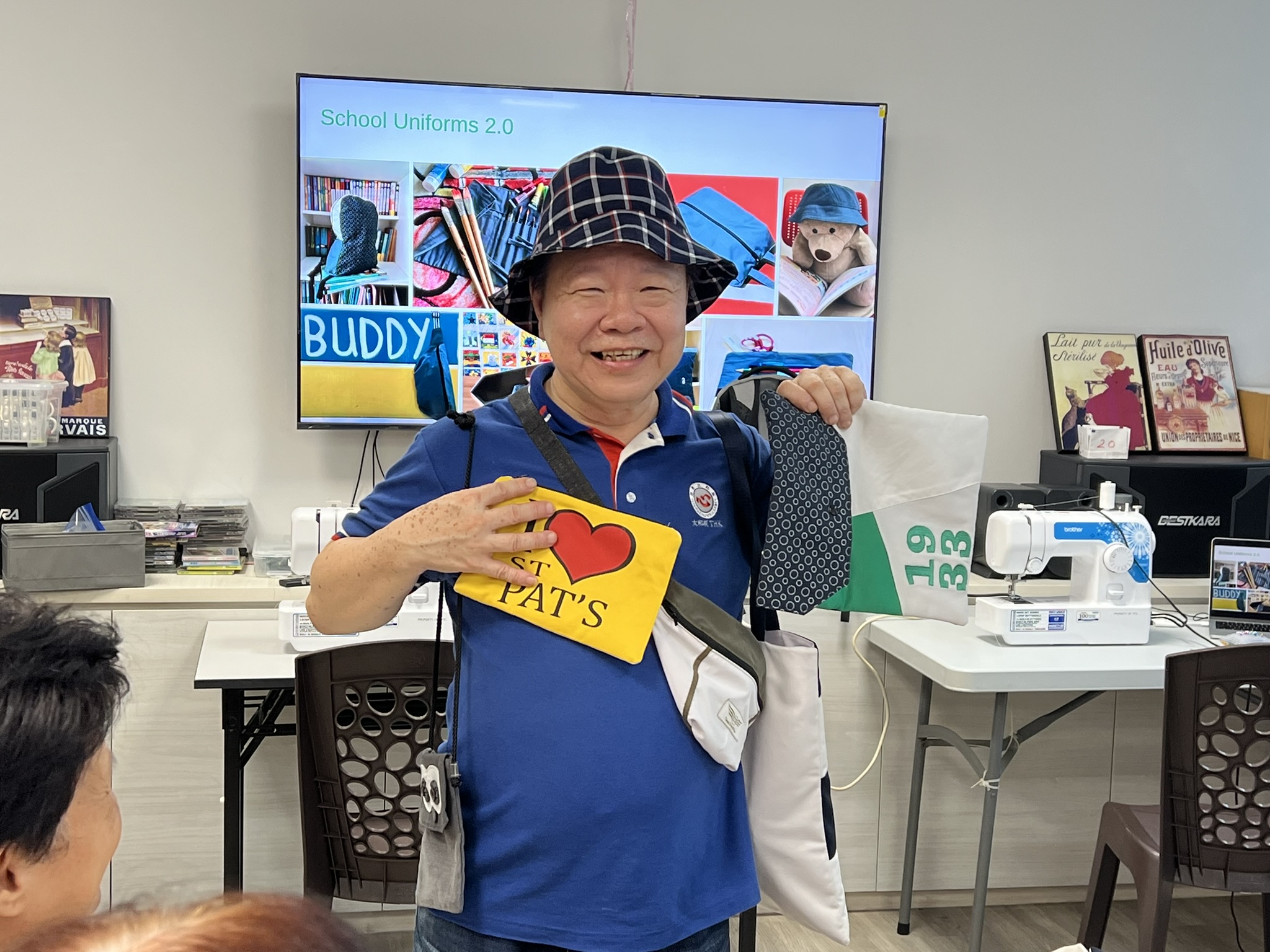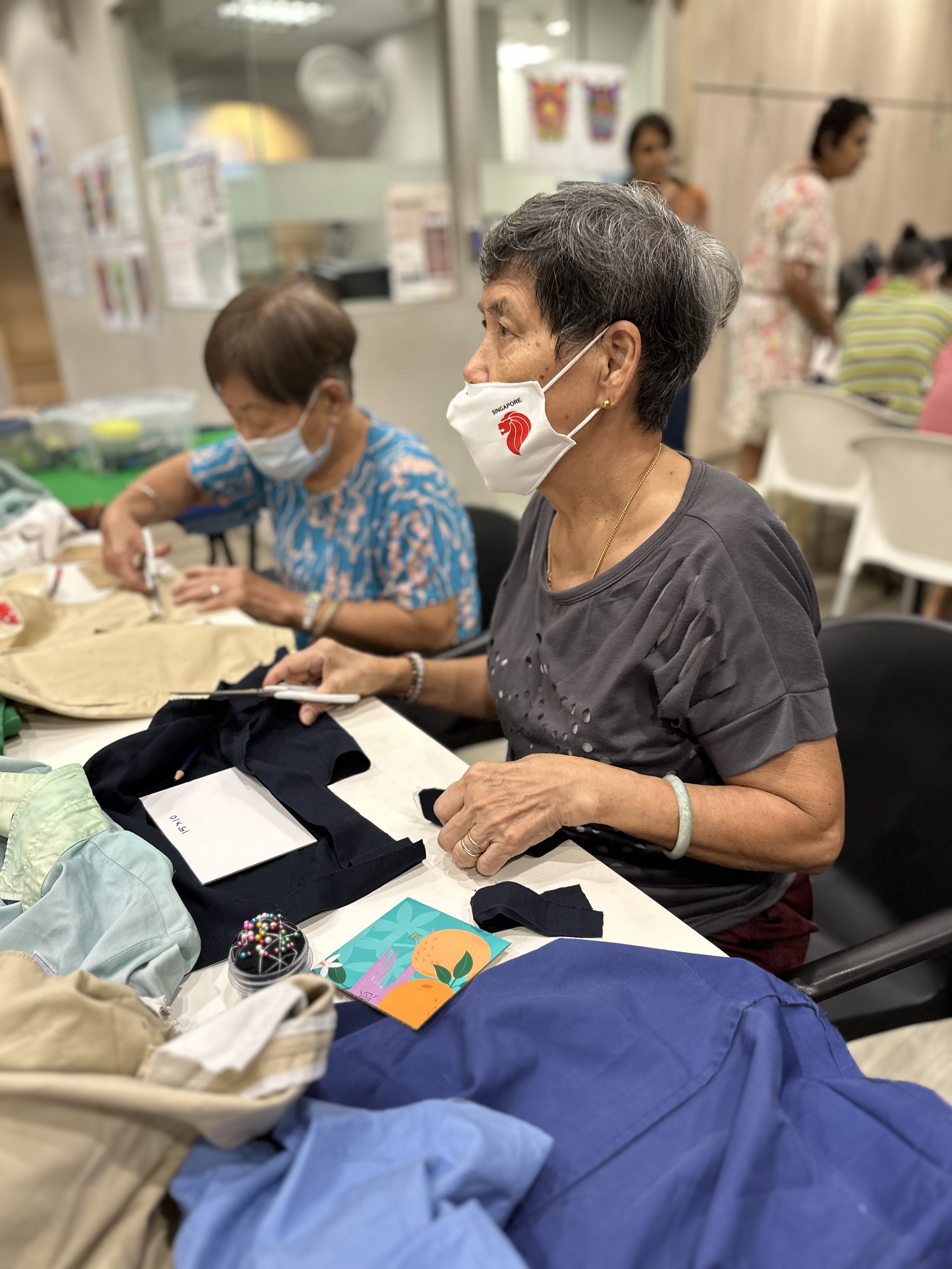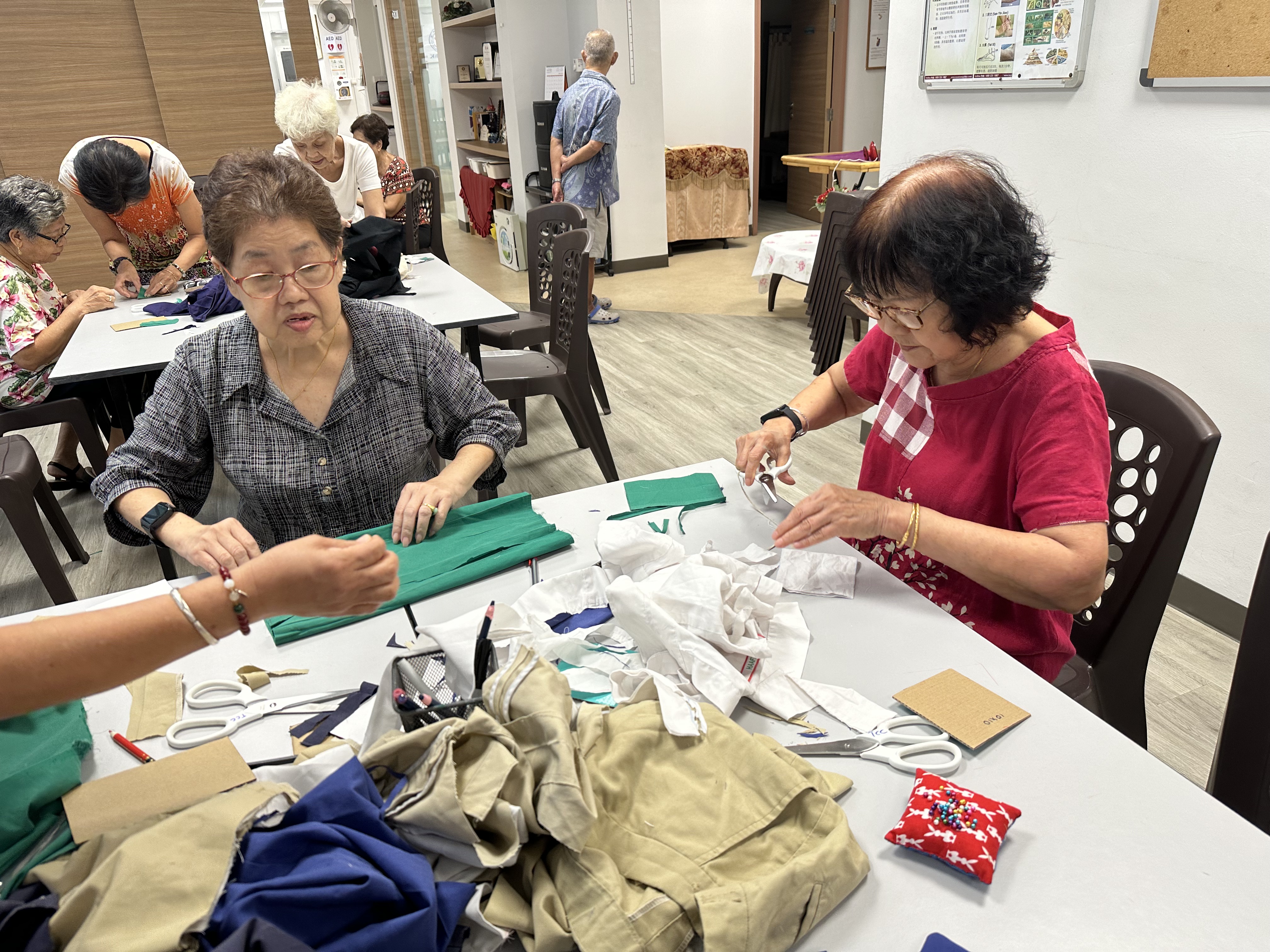 Recognizing the importance that art and handcraft activities play in promoting physical, mental, and emotional wellbeing, we run skills workshops and social activities for the elderly, contributing towards the government’s active ageing programme. By using school uniforms as our key resource for the handcraft workshops, we also promote intergenerational collaboration and storytelling about education journeys in our work. We are currently running monthly workshops with two Active Ageing Centres managed by THK Moral Charities, namely THK Active Ageing Centre @ Cassia and THK Active Ageing Centre @ Kaki Bukit!